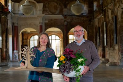 Designerin Bea Berthold und Pflanzenkoordinator Stephan Wartenberg haben bei einem Pressetermin am 5. November 2025 im Palais im Großen Garten das Konzept für den Dresdner Frühling im Palais 2026 vorgestellt. Höhepunkt ist eine etwa sechs Meter hohe Baumskulptur im Festsaal - im Bild als Modell. Deutschlands bedeutendste Indoor-Frühlingsblumenschau mit etwa 40.000 blühenden Pflanzen und Meisterfloristik ist nach drei Jahren Pause vom 27. Februar bis 8. März 2026 zu erleben. Der Vorverkauf läuft.