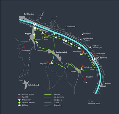 Wegverlauf Caspar-David-Friedrich-Weg Sächsische Schweiz