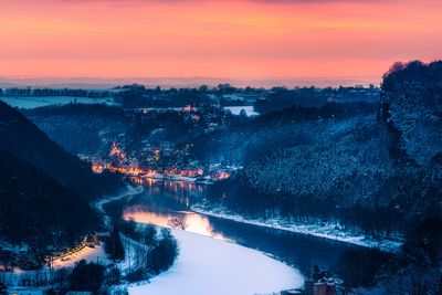 Blick im Winter über die Elbe auf den Kurort Rathen