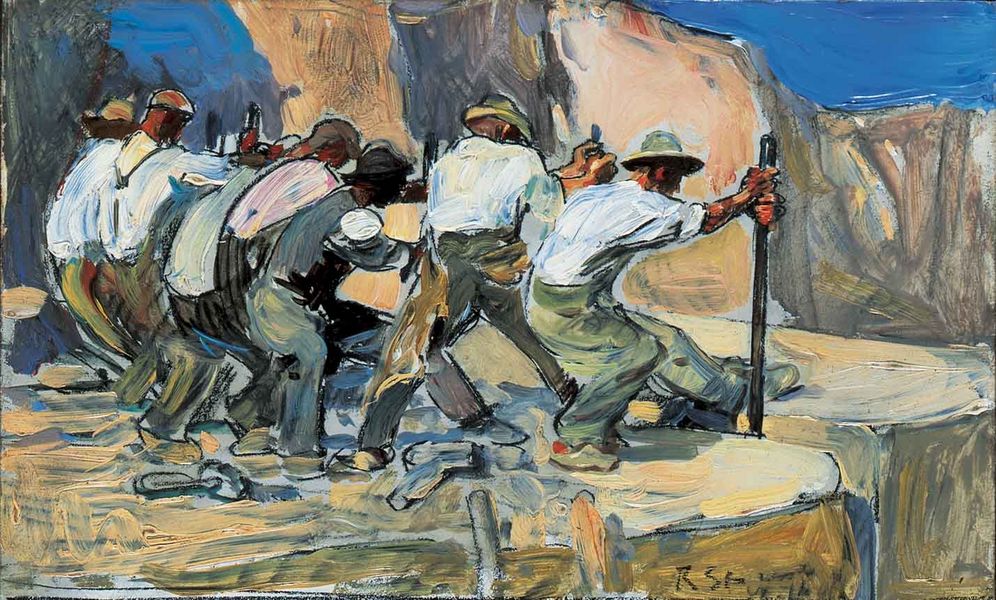 Ein Illustrationsauftrag brachte den jungen Dresdner Maler, Robert Sterl (1867-1932), mit der lauten und staubigen Welt der Steinbrecher in der nur wenige Kilometer entfernten Sächsischen Schweiz in Berührung. Das Thema ließ ihn zeitlebens nicht mehr los. Über 30 Jahre lang lieferten ihm die Arbeiter in Steinbrüchen Motive für berühmte Werke wie „Steinbrecher mit Brechstangen“ oder „Steineklopferin“.