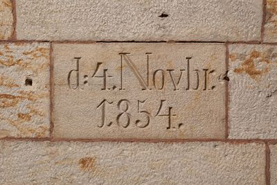 Schlussstein im Gewölbe mit Datum „d: 4. Novbr. 1854“