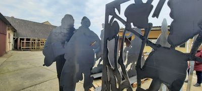 Auf dem Schlachtfeldpfad 1632 in Lützen stehen Metallstelen für die Protagonisten der Vergangenheit