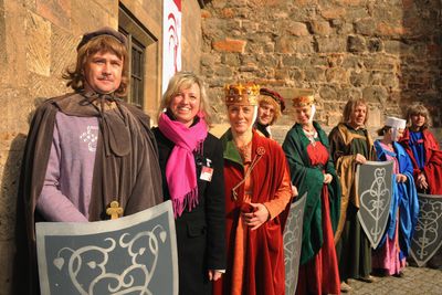 Zum Uta-Treffen versammeln sich die Stifterfiguren vor dem Dom